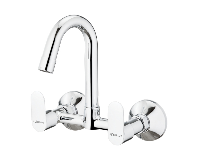 Sink mixer (wall mounted) with long swivel spout, connecting legs and wall flanges
