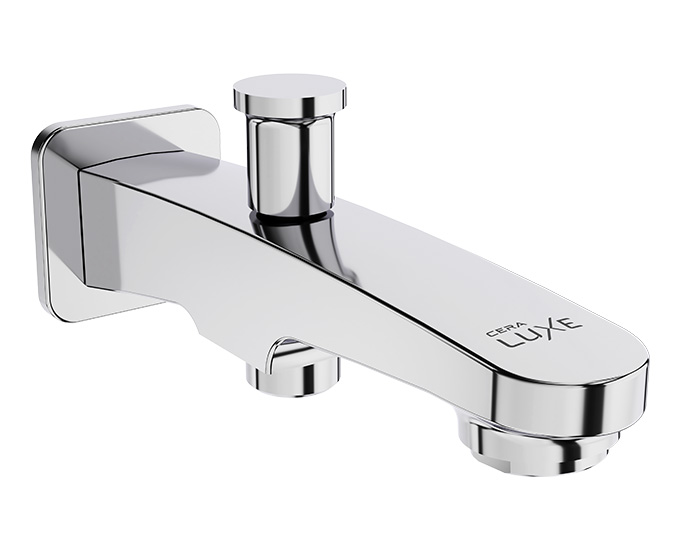 Bath tub spout with wall flange and button arrangement for telephonic shower