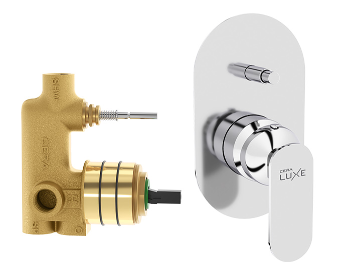 5-Way push type (3 inlets + 2 outlets) single lever concealed diverter system consisting of Exposed part and Concealed part