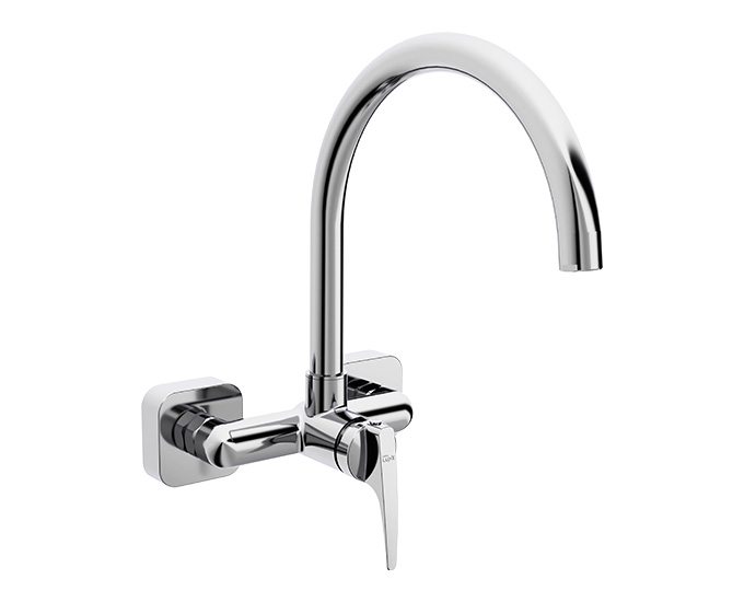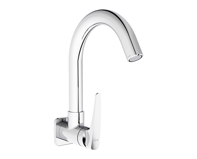 Sink cock (wall mounted) with 150 mm (6") long swivel spout and wall flange