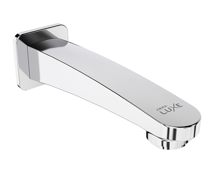 Bath tub spout with wall flange and button arrangement for telephonic shower
