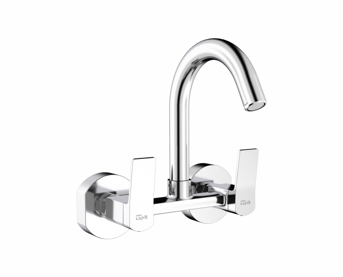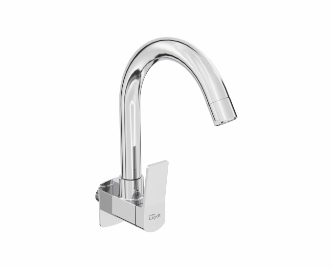 Sink cock (wall mounted) with 150 mm (6") long swivel spout and wall flange