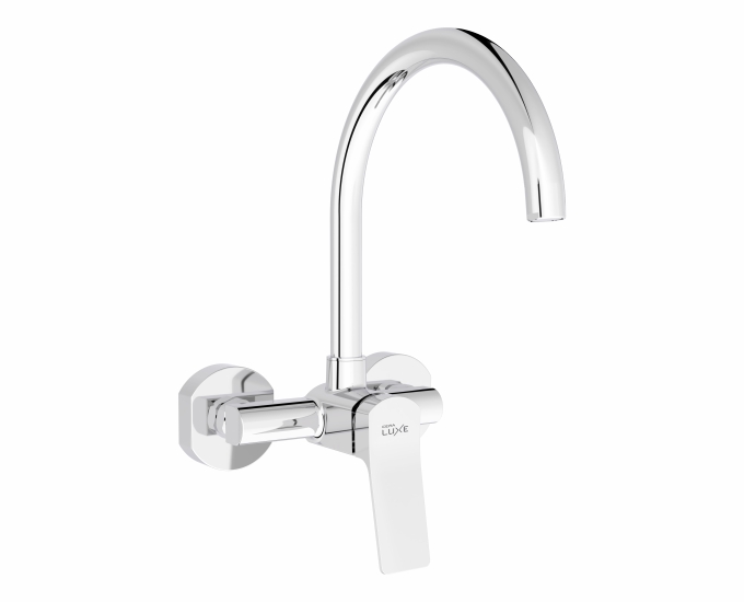 Single lever sink mixer (wall mounted) with 235 mm (9") long swivel spout and 450 mm long braided connection pipe