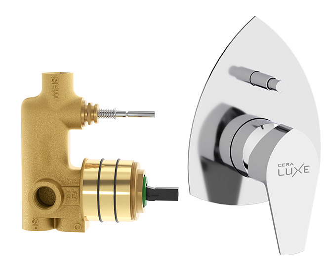 5-Way push type (3 inlets + 2 outlets) single lever concealed diverter system consisting of Exposed part and Concealed part
