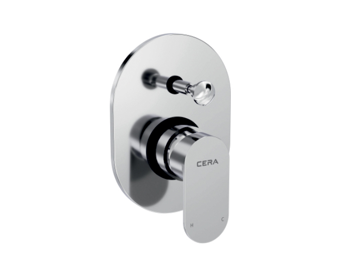 High flow single lever concealed diverter system consisting of Exposed part (lever, tip ton knob, flange, cartridge sleeve) and Concealed part (45 mm cartridge with button assembly)