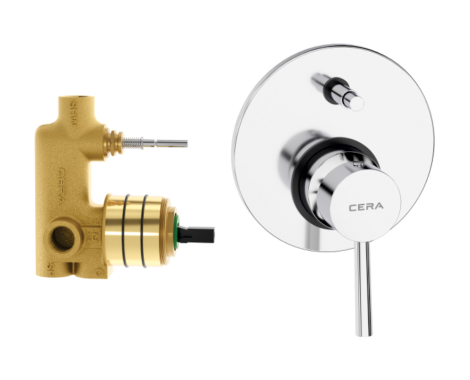 5-Way push type (3 inlets + 2 outlets) single lever concealed diverter system consisting of Exposed part and Concealed part