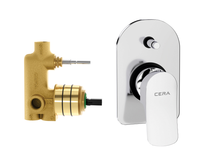 5-Way push type (3 inlets + 2 outlets) single lever concealed diverter system consisting of Exposed part and Concealed part