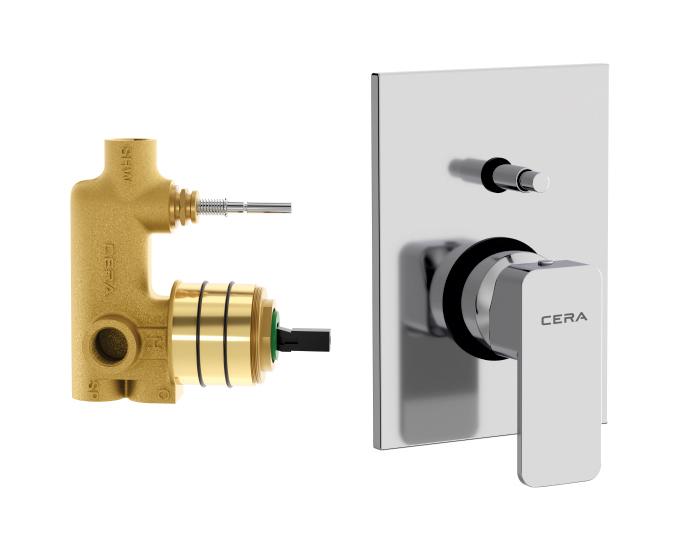 5-Way push type (3 inlets + 2 outlets) single lever concealed diverter system consisting of Exposed part and Concealed part