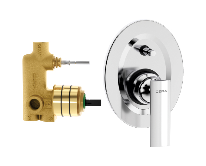 5-Way push type (3 inlets + 2 outlets) single lever concealed diverter system consisting of Exposed part and Concealed part
