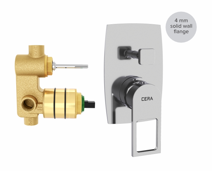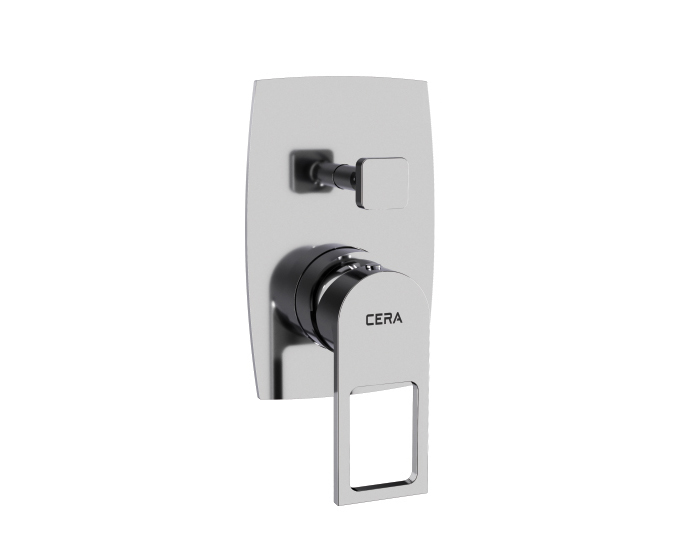 High flow single lever concealed diverter system consisting of Exposed part (lever, tip ton knob, flange, cartridge sleeve) and Concealed part (45 mm cartridge with button assembly)
