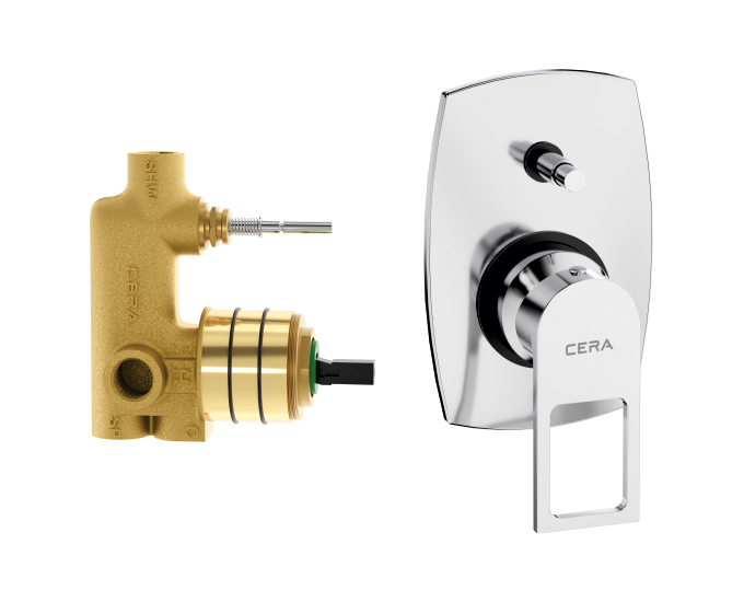 5-Way push type (3 inlets + 2 outlets) single lever concealed diverter system consisting of Exposed part and Concealed part