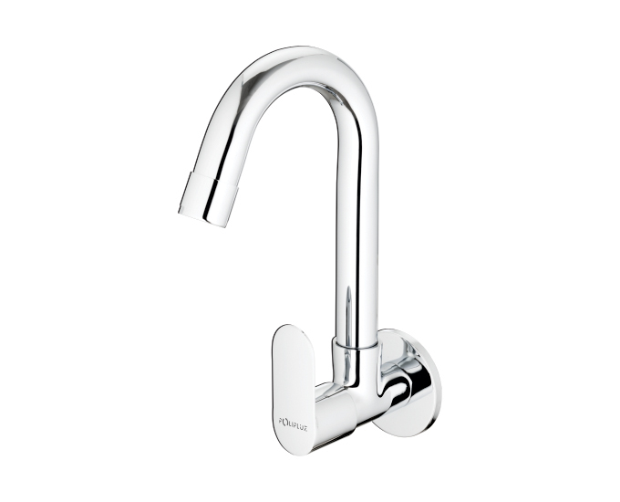 Sink cock (wall mounted) with long swivel spout and wall flange