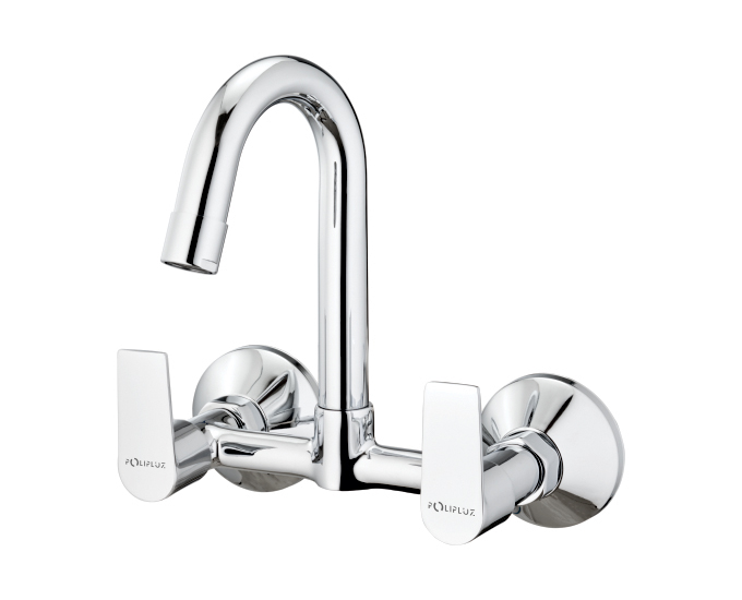 Sink mixer (wall mounted) with long swivel spout, connecting legs and wall flanges