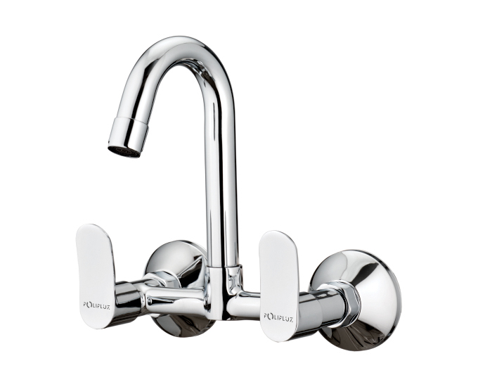 Sink mixer (wall mounted) with long swivel spout, connecting legs and wall flanges